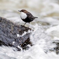 wippend auf einem Stein mitten im Fluss. Die Wasseramsel ist der einzige Singvogel, welcher schwimmen und tauchen kann. Weitere interessante Informationen über die Wasseramsel erfahren wir auf dem Weg.
